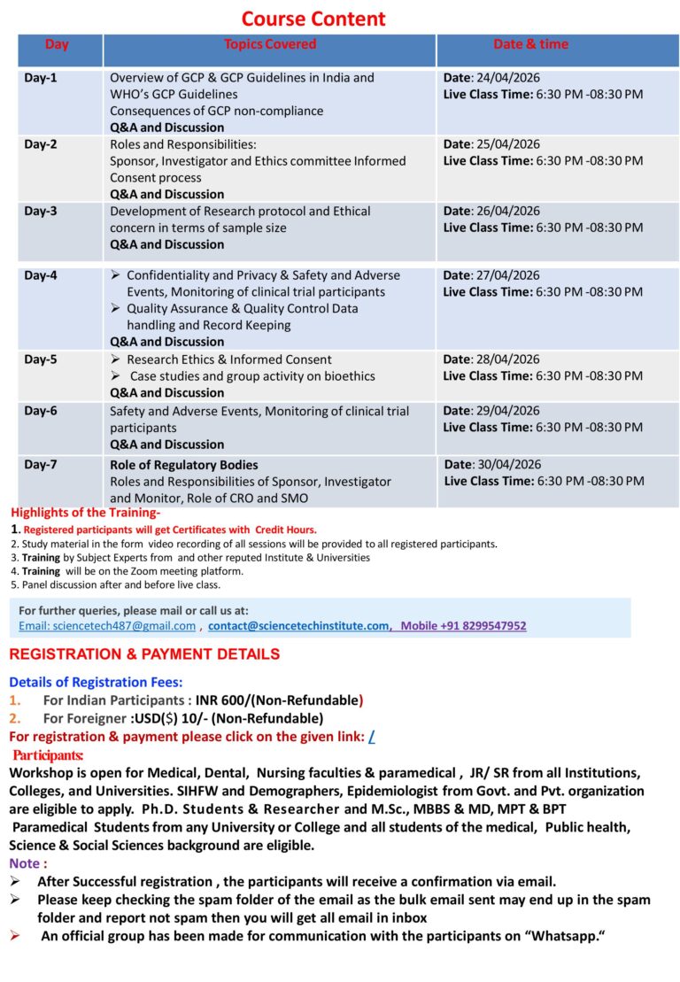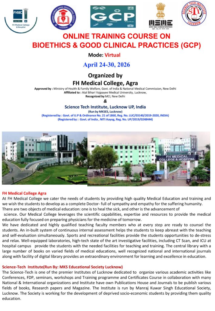 ONE WEEK ONLINE TRAINING COURSE ON BIOETHICS & GOOD CLINICAL PRACTICES (GCP) (April 24-3o, 2026)