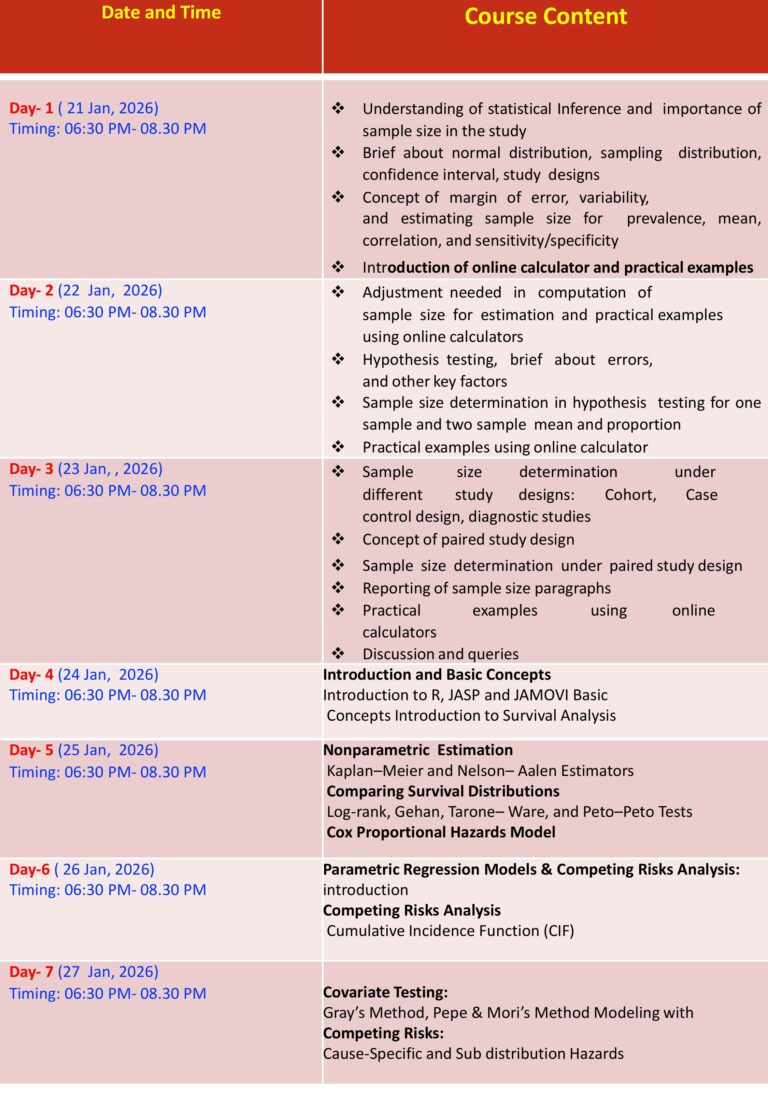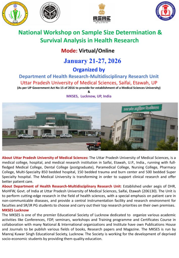 Online National Workshop on Sample Size Determination & Survival Analysis in Health Research (Jan 21-27, 2026)